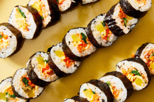 Kimbap adalah jenis makanan korea yang terdiri dari nasi yang di bungkus dengan rumput laut. Kimbap populer sebagai makanan yang di bawa piknik,hiking atau aktivitas lain di luar ruangan.