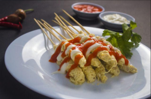 – Tuang 1 sdt adonan ke dalam minyak panas dan langsung gulung adonan dengan tusuk sate hingga semua adonan tergulung.